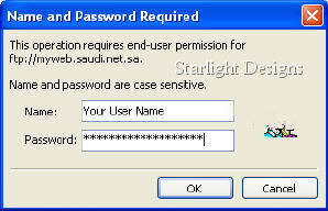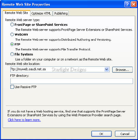 Click on FTP, in the Remote Web Site location, put.. ftp://myweb.saudi.net.sa
